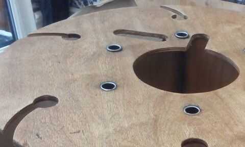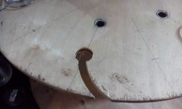 La última de las marcas serían los agujeros para los altavoces, otra vez tuve la suerte como uno de mis trozos de sierra era las dimensiones exactas que necesitaba para montar el altavoz.