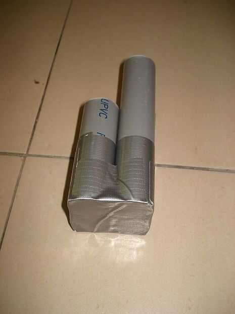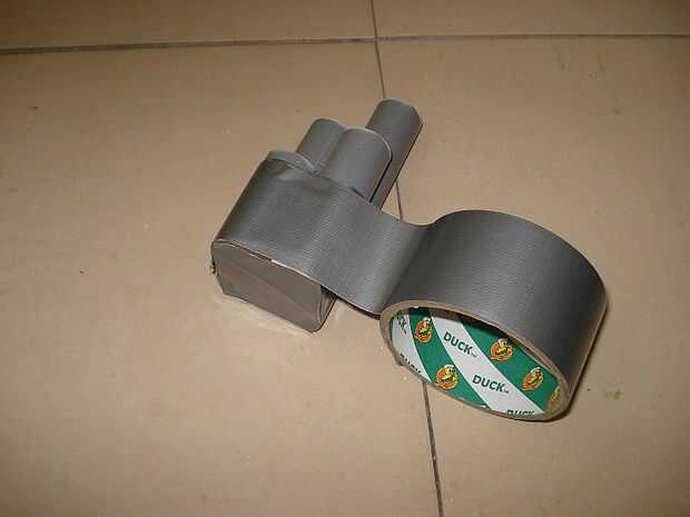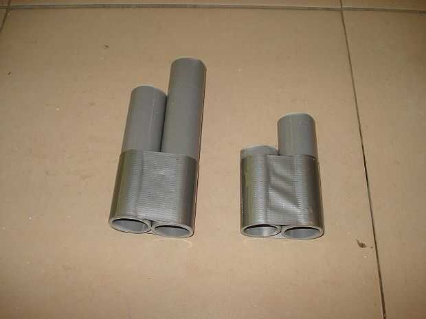Una vez que todos los tubos se ensamblan, necesita tapar la parte inferior. He hecho esto con cinta pato también. Tal vez que usted puede pensar en otras alternativas. Asegúrese de que todas las lagunas están cubiertas y que solapen bien en el lado con la cinta pato. La superposición es asegurarse de que la capa final de la cinta del pato que se aplica en el lado de los tubos Sujete la cinta que conecta la parte inferior. En mi primera versión, no tengo ese toque final y después de algunas semanas, la cinta pato separado con el calor y los amarres de cable todos terminaron en el piso...
