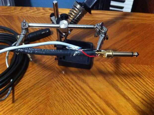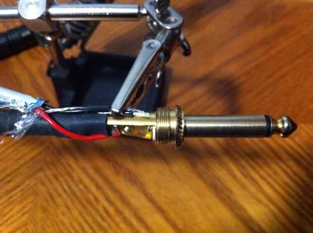El negro de la soldadura sin aislamiento lateral XLR cables y a la lengüeta larga del cable Mono. Utilizar los mismos métodos como hiciste el cable rojo. No hubo ninguna soldadura expuesta en este lado de mi cable mono, así que a soldar los cables del lado XLR a la parte metálica de la ficha. Puede y debe usar flujo si se soldar, pero no lo hice, y que es perfectamente aceptable.