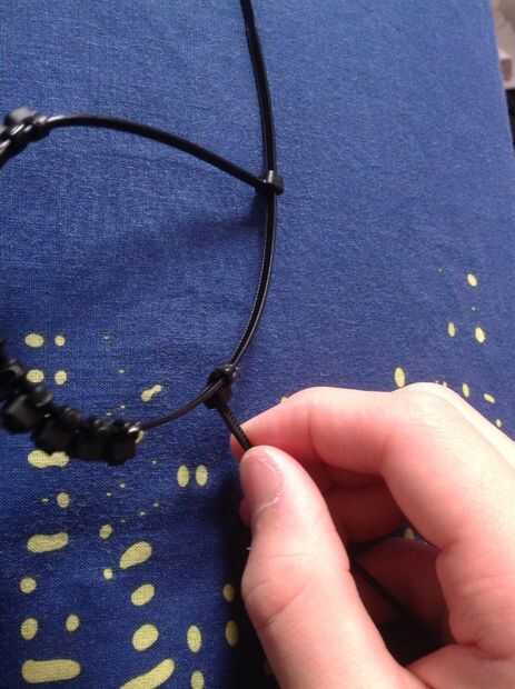 Para hacer un nódulo, mantenga la cabeza de la eliminatoria para el lazo base y lazo de la cuerda alrededor del lazo base y por el empate, sosteniendo la cabeza de la eliminatoria a la base, una vez que el bucle es pequeño. Tienes que alinear las cabezas de los lazos a medida que los agrega en, así que intento mantener el cuerpo de la corbata tocando el lazo base como usted del hilo de rosca. También se ve bien si usted hace que los lazos son del mismo modo para arriba, pero usted puede alternar entre hacia arriba y hacia abajo para crear un efecto más vibrante. También puede probar alternando colores para hacer la pieza realmente vibrante. Después de haber enhebrado y apretó el lazo, corte el extremo para formar un nódulo.