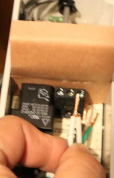 Afloje el tornillo de la regleta superior 120, gire los dos cables negros juntos, insertar los dos hilos en el terminal de 120 y apriete.