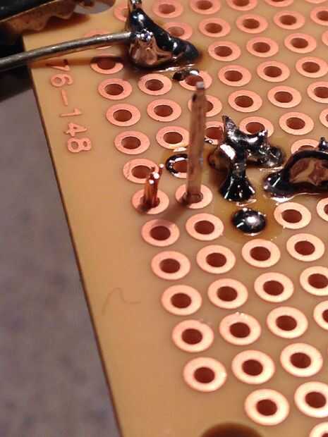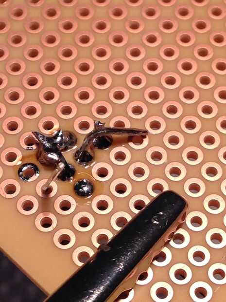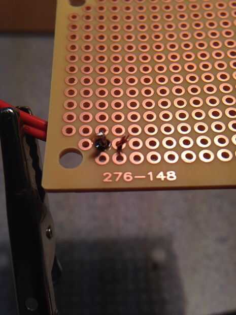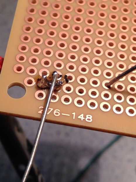 Cableado esto es relativamente sencillo, pero para quien está empezando a recorrer cada paso. Primero tira el alambre que proporcionará la energía al circuito. La colocación es algo que es importante si tu cableado varias cosas a la placa de circuito. Aquí hay un amplio espacio para lo que planeo en cableado. Inserte el cable en el tablero y la soldadura. Después de inserto el cable que va a ser para poder a mi dispositivo que puente I también la conexión entre estos dos en el circuito. Luego doblar los dos extremos del diodo schottky abajo e insertarlo en el tablero con el extremo con el mosfet y luego puente la conexión entre ella y los otros cables de energía. Luego instalo el transistor en el tablero de modo que la pierna media (desagüe) quede alineada con el extremo sin soldadura del diodo schottky. El diodo es soldado en su lugar y es cortado el exceso y la pierna media y el diodo de schottky están conectados. Otro cable es soldada en su lugar al lado de esta y conectado a la conexión anterior, se trata de lo que normalmente es el lado de tierra de lo que es el dispositivo. Un alambre es soldado al lado de la pierna de la fuente del transistor y conectado a él, se trata de su conexión a tierra. Por último un cable soldado al lado de la pata gate de lo MOSFET y conectado a la misma, este cable es el cable que irá al pin en su micro-controlador que se comunicará con el transistor.