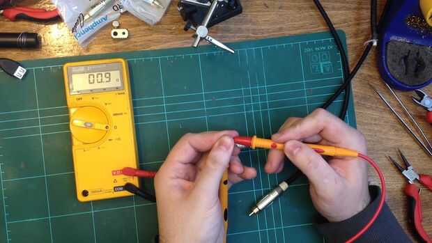 Cuando se trabaja con manga de poliester, tratar de cortar con un cortador afilado lateral o un cuchillo para uso general y quemar el extremo con un mechero para que la trenza no comienza a desentrañar. Con el primer cable completo, comprueba la continuidad, así como la resistencia.