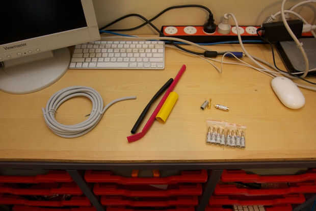 Ha habido pruebas de escucha ciega bien publicitadas donde oyentes "oreja de oro" no podían decir la diferencia entre cara, mano hecha en cima de una montaña por los monjes bajo la luz de la segunda luna llena en un mes y cuesta $1k por cables de metro y... alambre de percha normal. Ahora, perchas de alambre es un poco demasiado duro para mi gusto y tuve algunos bellamente cable flexible, así que esto es lo que empecé con. Puede utilizar cable de red, puede utilizar el cable de la lámpara, usted puede incluso utilizar cable de altavoz real si lo desea - que va sonar mejor que los pequeños alambres finos que se entregan con un montón de sistemas de sonido.