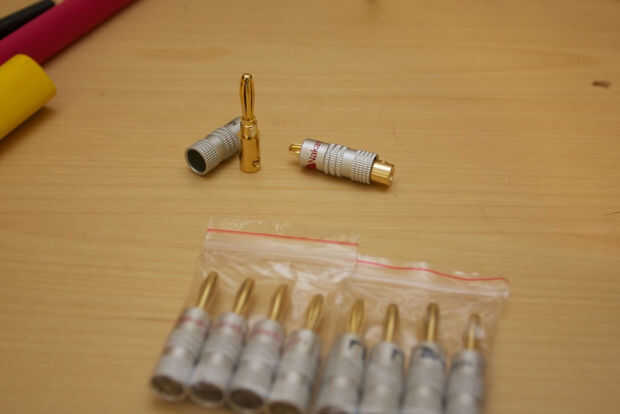 Los Enchufes de plátano - esto supone le está A / V equipo acepta los enchufes de plátano. Más mediados de gama alta cosas hace. Tengo un sistema de enchufes de plátano "Nakamichi genuino" fuera de eBay. Que eran $2 cada uno, incluyendo el envío. No importa que no sean lo fueron vendidos, por dos dólares, que son gran valor. Necesita cuatro para cada canal (dos por cada extremo)