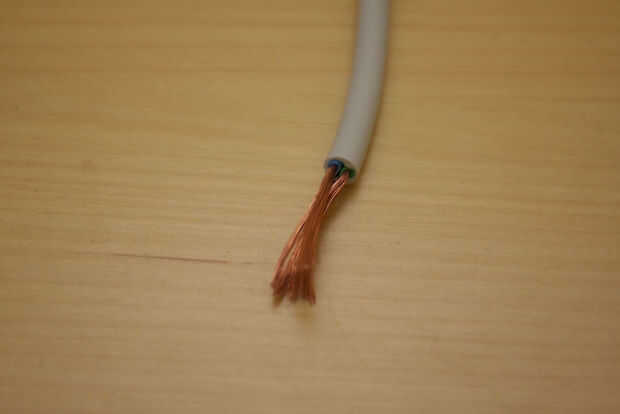 Utilizando su método preferido, tira un par de centímetros del extremo de cada cable. Desea el aislamiento externo e interno de la tira en el mismo punto para este proyecto.