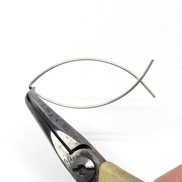 Agarre el cable justo al lado de la marca que hizo con el rotulador, como se muestra en la foto y doble el alambre con cuidado hasta llegar a un pez de la forma como en la foto.
