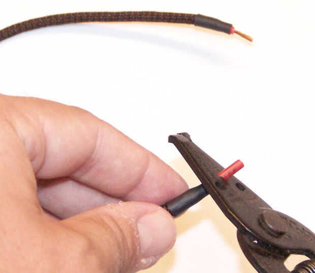Tira de los extremos del cable según los conectores que está utilizando.  Mis conectores banana necesitan aproximadamente 1/4 pulg alambre pelado.