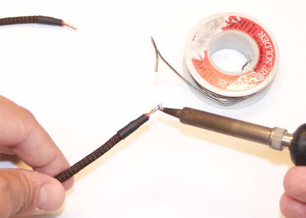 Los extremos del alambre de estaño calentando con un soldador y añadiendo suficiente soldadura para llenar los vacíos entre las hebras de alambre.