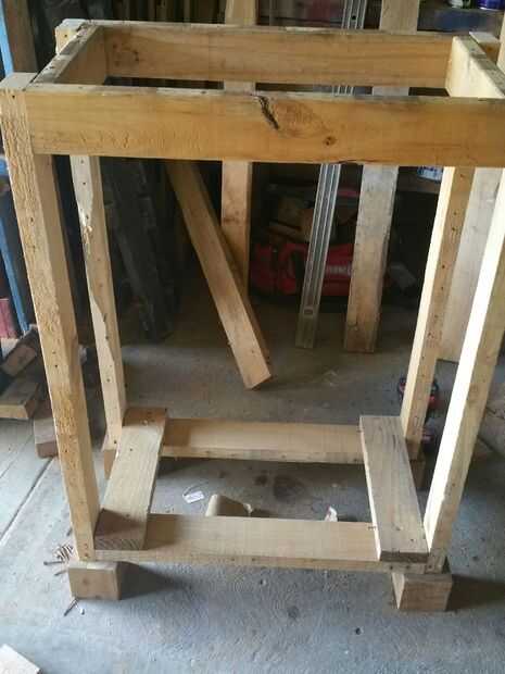 En primer lugar tuve que construir el marco. Este es el esqueleto del cabnet. Una vez que este paso se ha hecho sólo una materia cubierta con paneles. Usé los palets de madera para trabajar en la altura del cabnet. entonces aproximadamente trabajé la anchura y profundidad para mi likeing.