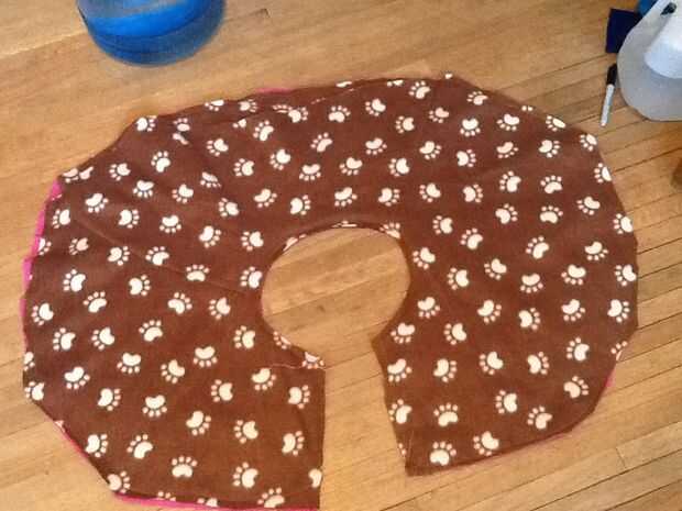 Corte una línea a través de la tela para cortar el agujero de la cabeza. Corte el orificio de la cabeza. Ejemplo en la siguiente imagen