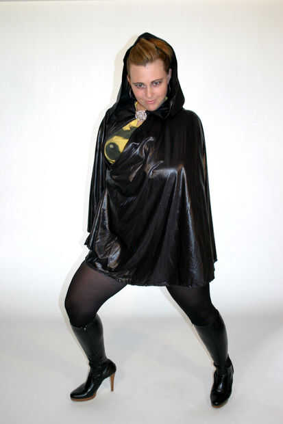 La campana creó tomando una sudadera con capucha y poniendo la parte de campana plana en un periódico y trazó un patrón para cortar.