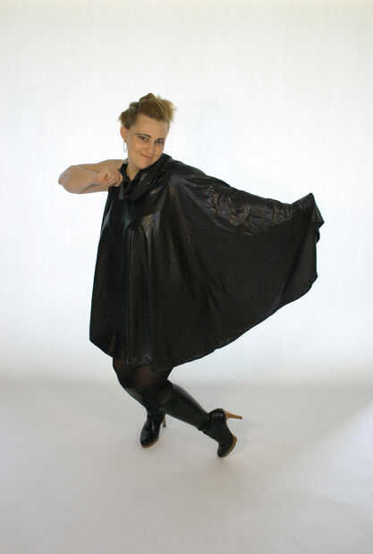 Coser la capucha a la "cintura" de la falda de caniche y listo. Utilizar un elegante pasador o broche para el cierre en el cuello.