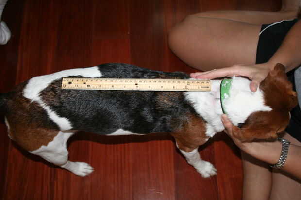 No todos los perros son del mismo tamaño así que obviamente no voy a poder decirle qué tamaño hacerlo, pero puedo decirle cómo medirlo. (Mi perro es bastante pequeño, así que si tienes un perro grande, puede que necesite un criterio o una de esas cintas métricas que utilizas para coser). Para obtener una capa que es tiempo suficiente para que su perro, desea medir desde la parte inferior de su cuello a unos tres o cuatro pulgadas por encima de su cola. Para el cuello de la capa, tienes que miden aproximadamente a mitad de camino alrededor del cuello del perro. Para la base de la capa, debe medir desde la base de un muslo a la base de la otra. (por favor mirar las fotos, hará todo mucho más fácil).