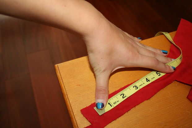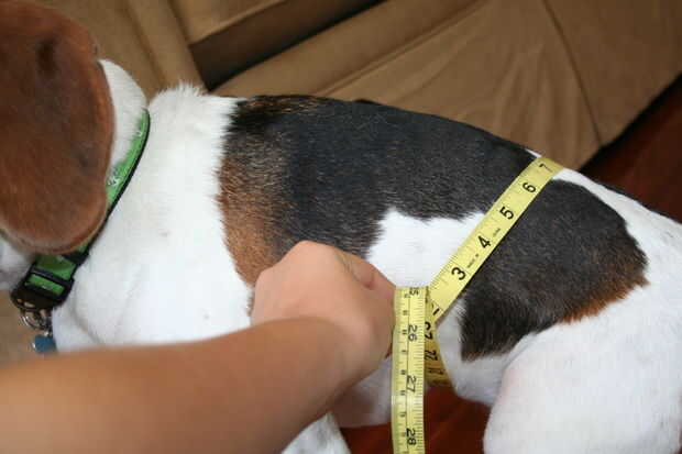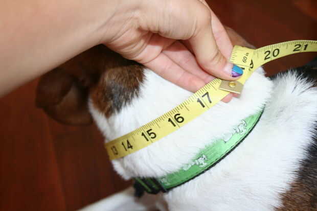 Medida alrededor del cuello del perro. Usted quiere que sea cómodo, pero no asfixia a su perro. Cortar una tira de material que la longitud y cerca de una pulgada de ancho. Ahora Mida alrededor del vientre de su perro. Una vez más, debe ser ajustada, pero no demasiado apretado. Cortar una tira de esa longitud aproximadamente una pulgada de ancho. Ahora ponga un cuadrado pequeño de velcro en los extremos de aquellos. Asegúrese de que usted ponga el lado suave del velcro hacia arriba. Que no desea a irritar a su perro.