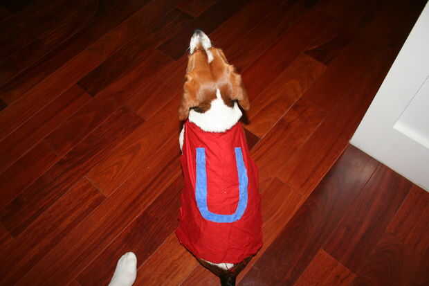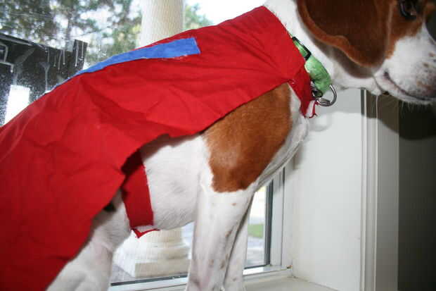 Por lo tanto, sé que ha pasado Halloween, pero se puede usar este para el próximo Halloween o sólo hacer que su cachorro vea adorable!!!!!!OK... así que.Día antes de Halloween: Dando los últimos toques en mi capa de Caperucita Roja. Miro a mi perro..