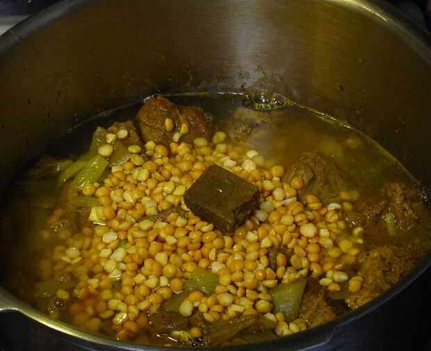 En la siguiente imagen he caído en otro cubo de caldo ya que no todos los hacen con las cebollas. Los detalles no importan demasiado en este plato - cocina bastante que tienes mucho margen de maniobra para probar y modificar.