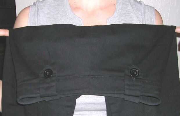 ¿Son mucho más ancha que los hombros el pantalón? Entonces los pantalones van a ser amplios en el área de la cadera. Huelga dos.
