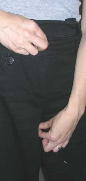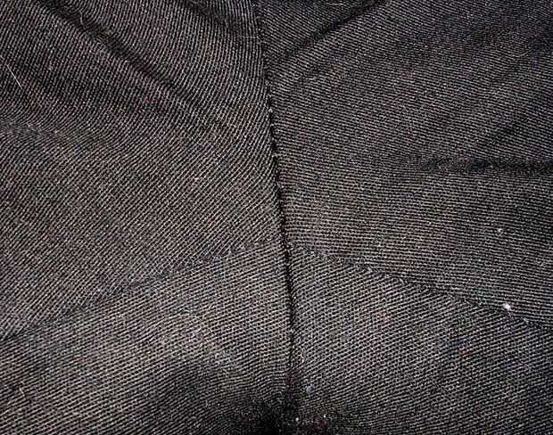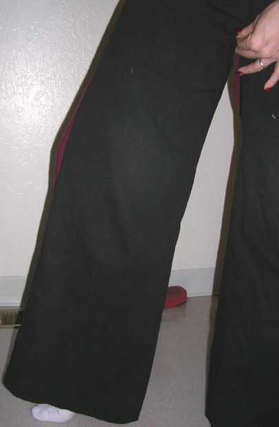 Encontrar el sitio en la entrepierna de los pantalones donde confluyen las costuras. Tomar ese lugar, mantenerlo hasta su propia entrepierna y compruebe las longitudes.
