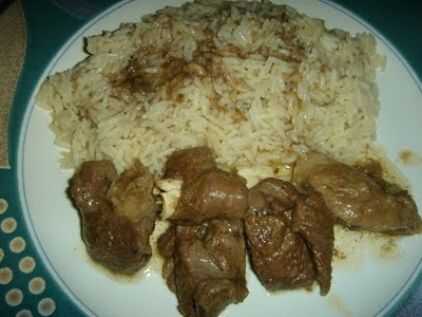 5. en un plato, coloque la carne en el centro, el arroz alrededor de él y vierta encima la salsa de la carne y disfrutar de la Comida mediterránea.