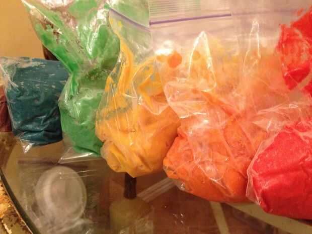 A continuación, puedes poner las masas coloradas en bolsas de sándwich y dejar se enfríen.
