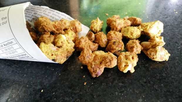 INGREDIENTESCacahuetes crudos, 1 tazaBesan harina – 1/2 tazaHarina-2 cucharadas de arrozPasta de ajo – 3/4 de cucharadita de jengibrePolvo de chiles de Cachemira – 2 cucharaditasPolvo de chiles rojo – 1 cucharaditaZeera polvo: 1 pizcaSaunf/hinojo en