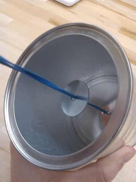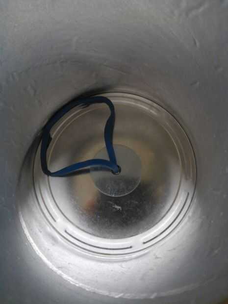 Sexto paso: llegar a la goma que está dentro de la lata. Coloque una arandela sobre la goma de dentro de la lata. Deslice la arandela en la parte inferior de la lata.