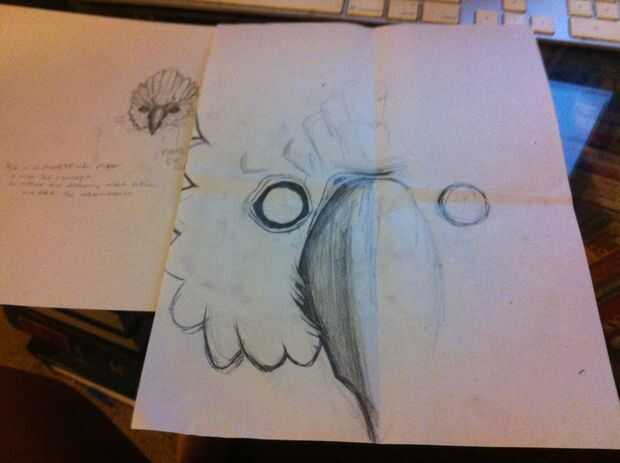 Utilice un pedazo fino de 8.5x11 pulgadas papel y un lápiz, bosquejo hacia fuera su idea. Corte y pegado un extra 4" de papel para permitir hacer una plantilla de máscara taller; Asegúrese de que tener suficiente piel para cubrir su diseño.