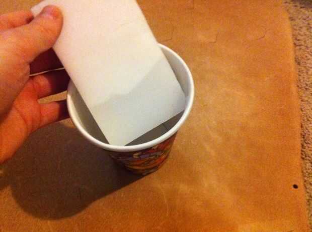 - Llenar la taza / tazón de fuente con un poco de agua y sumergir la esponja.