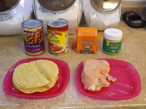 una explosión de exquisitez envuelto en una tortilla, asfixiada en Chile Verde y cubierto con queso bondad!!!!Paso 1: Se necesita; ~Pechuga de pollo sin piel~ 3 1/2 tazas de salsa de Chile Verde~ Tortillas de maíz blanco~ 3 cucharadas chiles verdes e