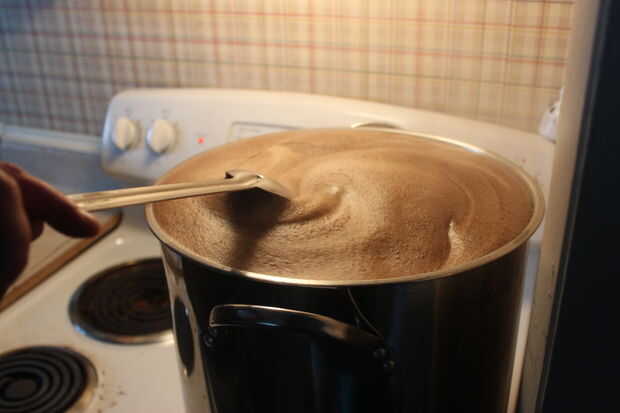 - Llevar el mosto a ebullición, teniendo cuidado de no dejarlo hervir. Sugerencia: Como el mosto se obtiene cerca de ebullición, proteína se acumulará en la superficie. Al llegar a este punto, disminuir la temperatura de su calentador un poco hasta que la proteína cae de nuevo en la hierba.