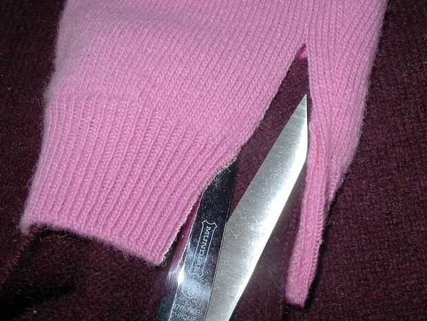 Corte cada suéter en tiras. Me gustaría iniciar w manga primero. Si tienes tiempo y paciencia, usted puede tratar de corte recto, siguiendo el tejido. Puesto que va a utilizar cinta fusible a lo largo de las costuras más adelante, esto no es necesario, aunque parece mucho más al final. Mayoría de las veces, el manga y el cuello brazal no será prácticos para este proyecto, sin embargo, si guarda, pueden hacerse en otros productos.