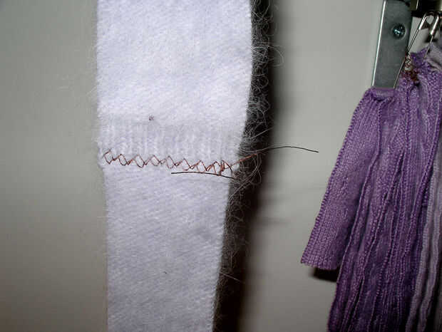 Conecte las tiras por el lado corto de coser juntos. Esto requiere generalmente alrededor de 2 a 3 corta tiras conectadas en los extremos cortos para hacer una tira suficientemente larga. Hacer unas pocas (2-3) de estas tiras a la longitud deseada.