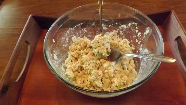 Comencé esta receta utilizando 2 latas (latas de 6-1/2 oz) de almejas picadas, pero cuando están juntos todos los ingredientes mezclados, encontré la mezcla a ser demasiado seco, por lo que he añadido otra poder de 6-1/2 onza de almejas picadas, con zumo, al recipiente con el fin de llegar a la consistencia adecuada.