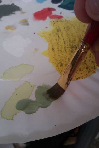 Exprimir un poquito de pintura verde más claro en un plato de papel.