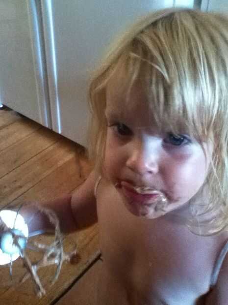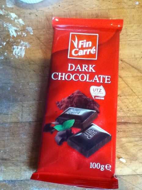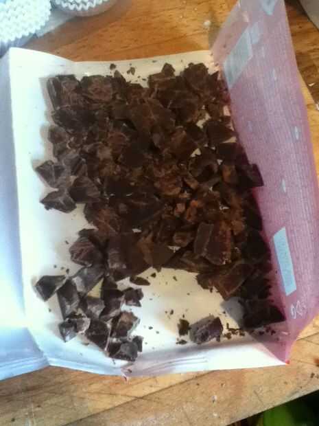 Mientras tanto, conseguir una barra de chocolate y smash con el extremo de un perno de balanceo, entonces cuidadosamente abrirlo y agregar los chips de chocolate con una cuchara. (Supongo que sólo podía comprar chips de chocolate, pero esto es más divertido)