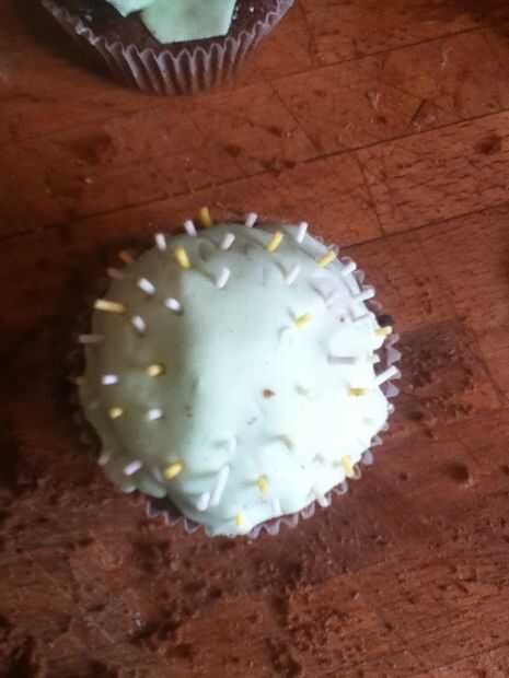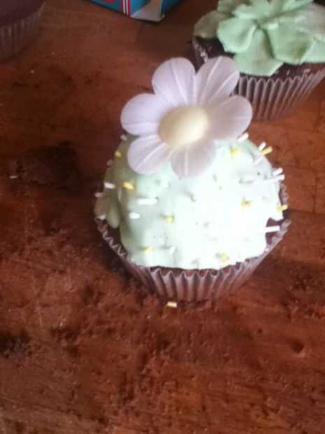 Difundir la tarta con mermelada y palillo en piezas adicionales para que sea una forma redonda. Luego cortar un círculo de la guinda verde y usarlo para cubrir la torta. La parte más lenta está pegando en los picos en todas partes y luego terminar colocando una flor en la parte superior.