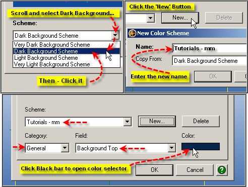 Puede crear un nuevo esquema de color seleccionando un esquema de color que está cerca de lo que te gusta, luego clic en el botón 'Nuevo', que utilizará los colores base en el esquema de color comenzó con antes de hacer clic en el 'nuevo' botón, y permiten realizar cambios.
