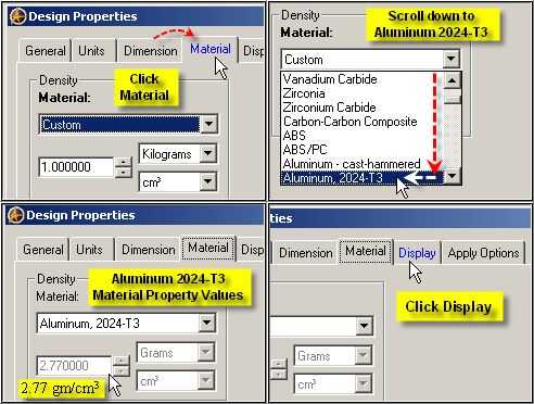 En la selección de Material , haga clic en la flecha y arrastre la barra deslizante hacia abajo hasta que localice aluminio, 2024-T3, haga clic en él.