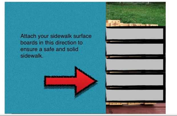 - Uso plataforma tableros, tableros de cerca, tablas de palet, etc.... y cortarlas todas a la misma longitud para hacer la cima a pie la superficie de la acera. Asegúrese de que son del mismo tamaño y grosor por lo que su banqueta es nivel y seguro.