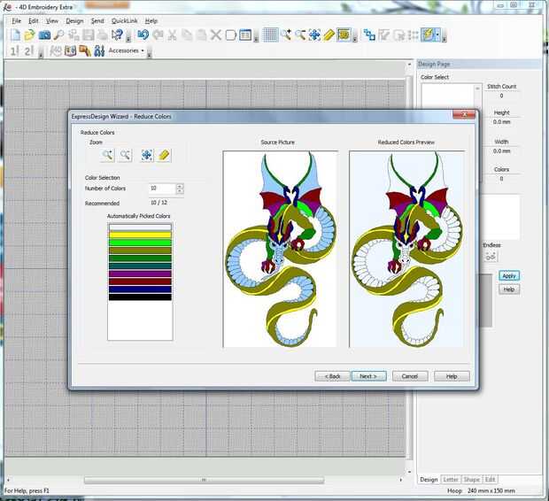 2. colores - el software intenta hacer como los colores de la misma y mezclarlos todos en sección de una puntada o convertir colores claros en blanco que se puede eliminar accidentalmente al quitar color de "fondo"