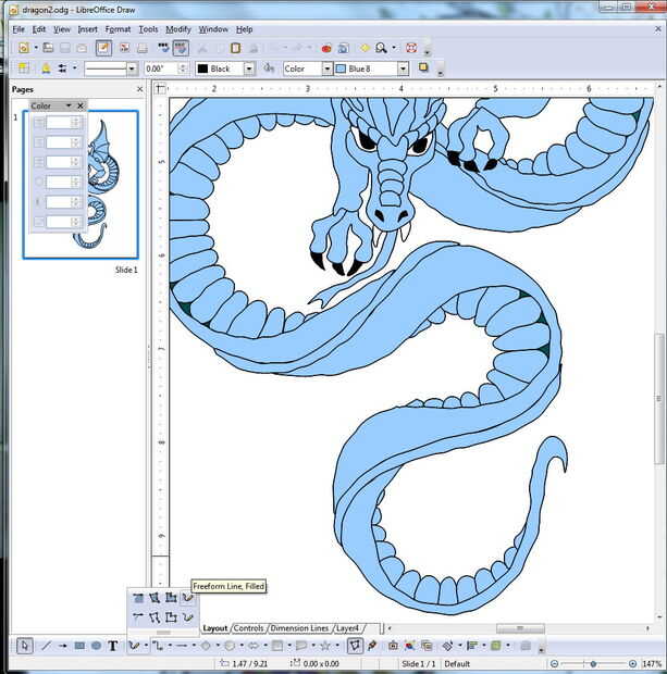 2. en el sorteo de oficina Libre, trazado cada discreto zona quería cosido con una "línea libre llenada" (sí, esto toma para siempre si la imagen es grande). No tienes que trazar las líneas exactamente, sólo asegúrese de que objetos de primer plano son de tamaño adecuados, y puede ser descuidado con los objetos inferiores de la pila de la imagen