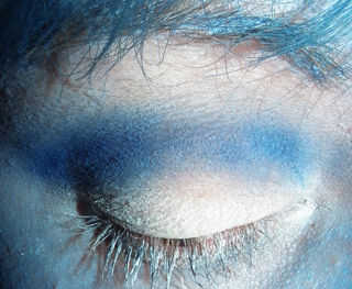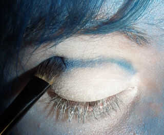 Hacer un pliegue con sombra de ojos azul y mezcla bien
