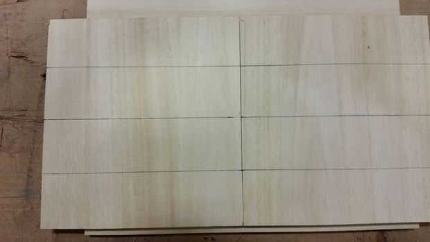 Con los dos pedazos más pequeños, marca 3 líneas 1,875" aparte en el grano, como se muestra.