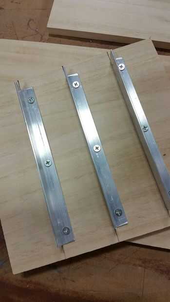 Uso de #6 x 0.5 "tornillos para madera, fijar cada riel en las líneas que marcó, centrada de los bordes. Asegúrese de hacer todas ellas van en la misma dirección. Tienes un lado "izquierdo" y "derecho". 0,5" pierna de alumbre ángulo debe señalar hacia arriba.