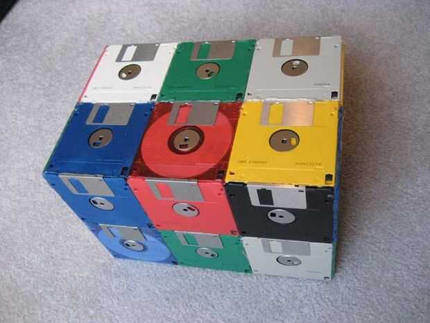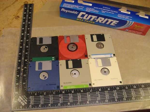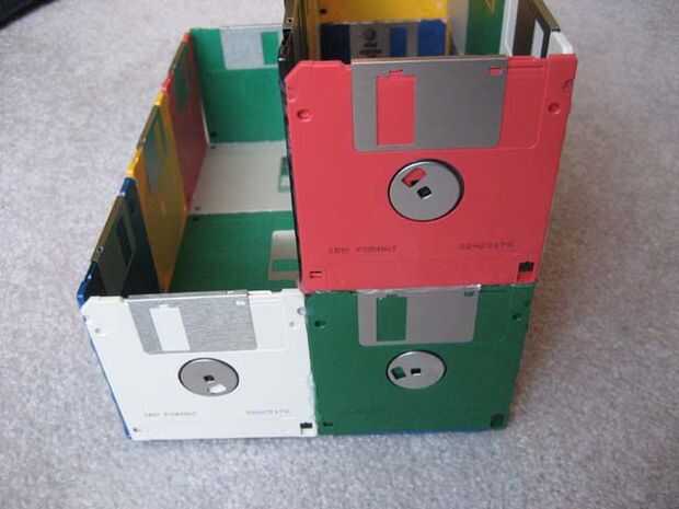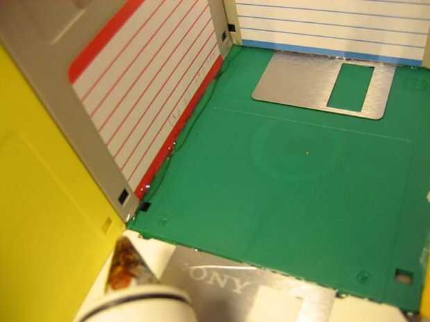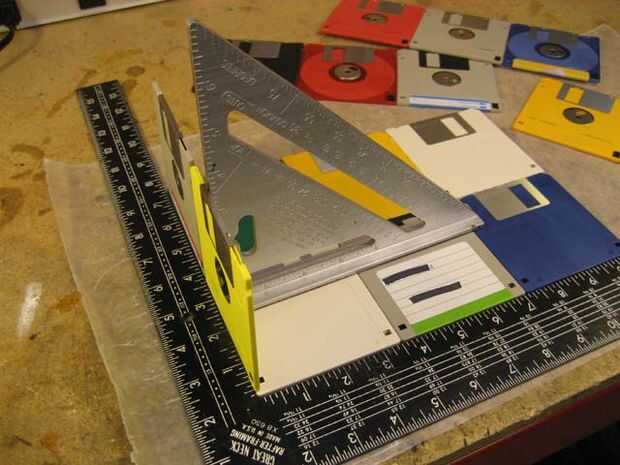 Crear los paneles laterales pegando en disquetes uno a la vez, asegurándose de que todo es cuadrado.