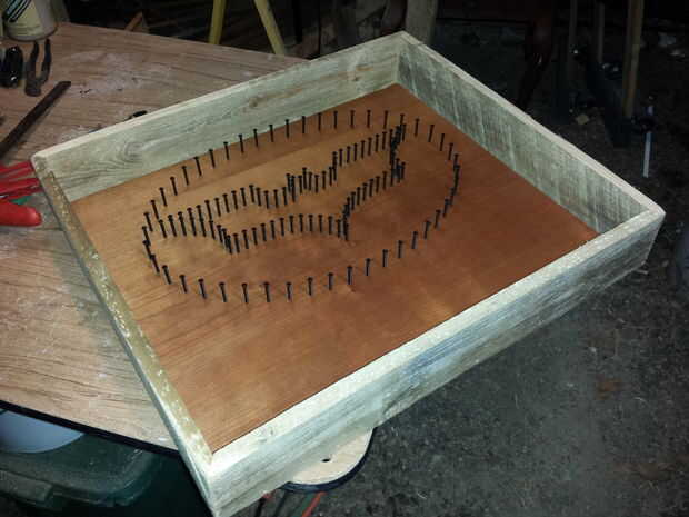 Proyecto de tesis estado cadena arte son divertidos de hacer y verse bien. básicamente clavo su frontera utilicé mi estado Wisconsin. Luego le clavo una estrella donde el capital es y cadena hilo hacia adelante y hacia atrás entre la estrella y la fr