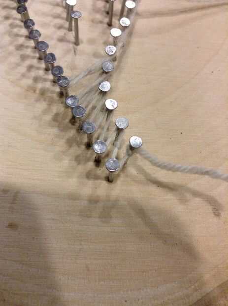 Al llegar al final, lo ate, cortar y pegar el extremo alrededor de un clavo.