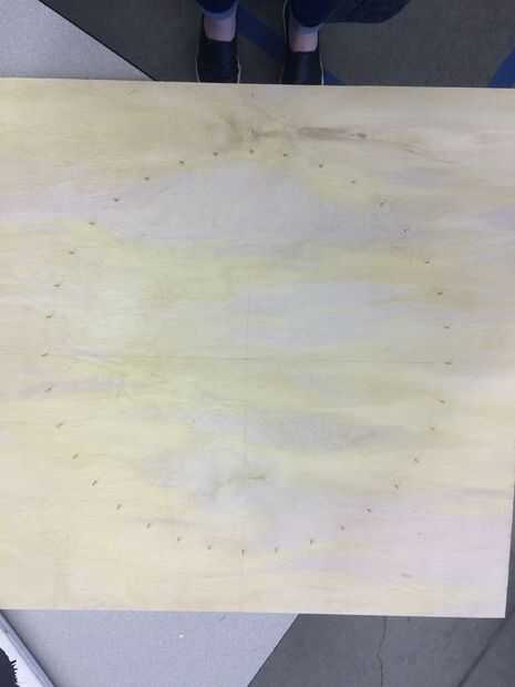 2. hubo 36 clavos, 1 cada 10 grados. Para encontrar este usa un transportador y lo colocó en el centro.