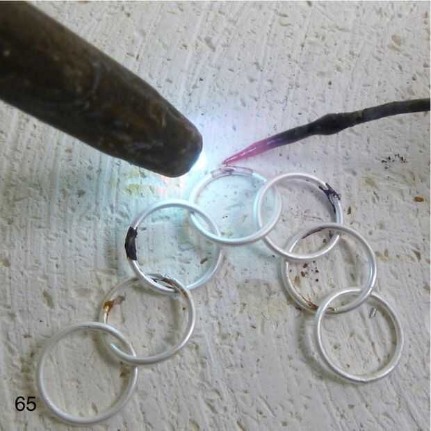 Seguir construyendo la cadena tomando dos parcelas de 3 links y unirlos con un séptimo enlace (imágenes 64 y 65). A continuación, unirse a dos parcelas de siete con un XV vinculan, y así sucesivamente hasta que la cadena de la longitud deseada.